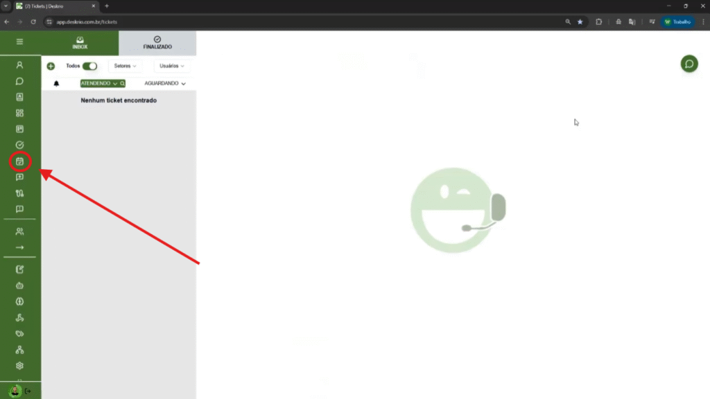 Em seguida, no menu lateral esquerdo, clique no ícone de Agendamento.