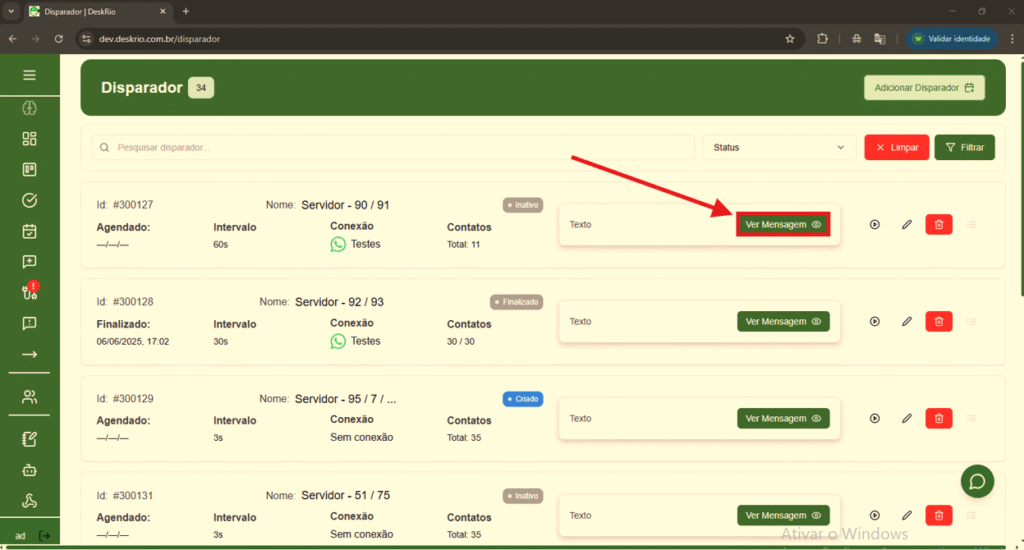 Visualizar mensagem: clique no botão verde Ver Mensagem para conferir a prévia.