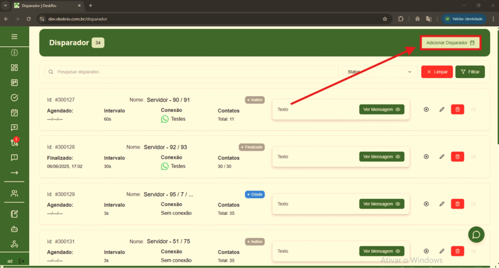 Neste artigo, você vai aprender como acessar, criar e gerenciar disparos no DeskRio.