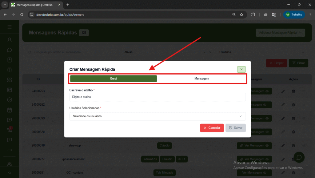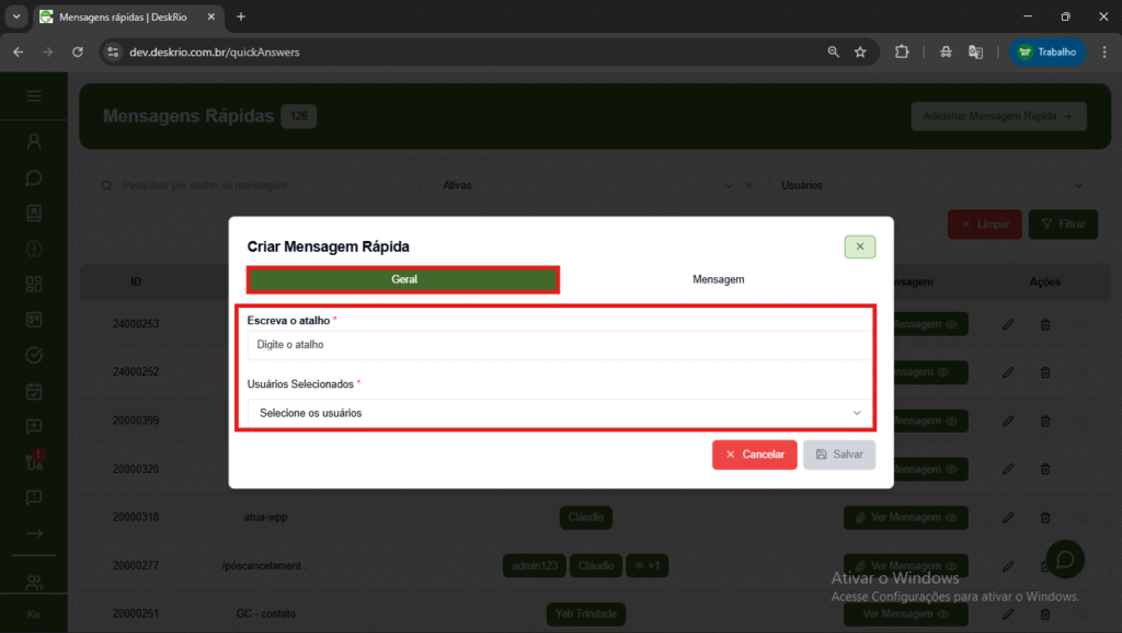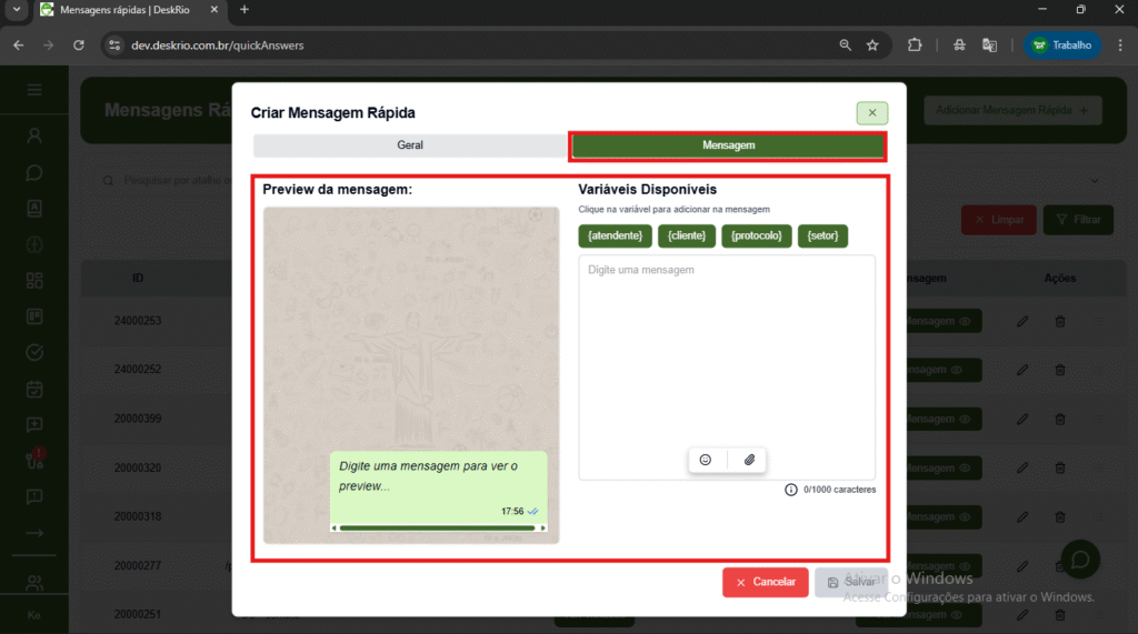 Neste artigo, você vai aprender passo a passo como acessar, criar, editar e usar mensagens rápidas no sistema DeskRio.